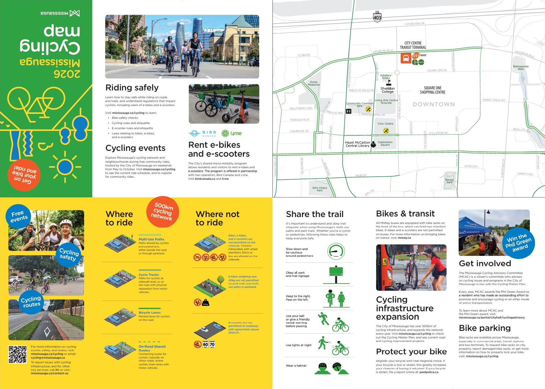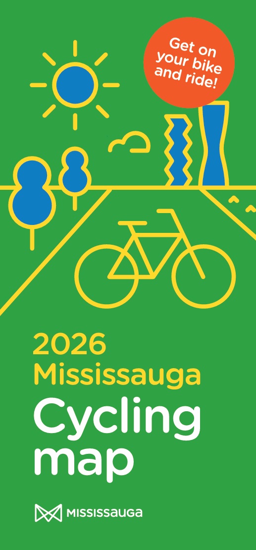 ▶ The new digital version of the 2026 Mississauga cycling map (2p PDF) may be downloaded from the City's Cycling Map webpage, where a paper map can also be ordered for free postal delivery 📬
