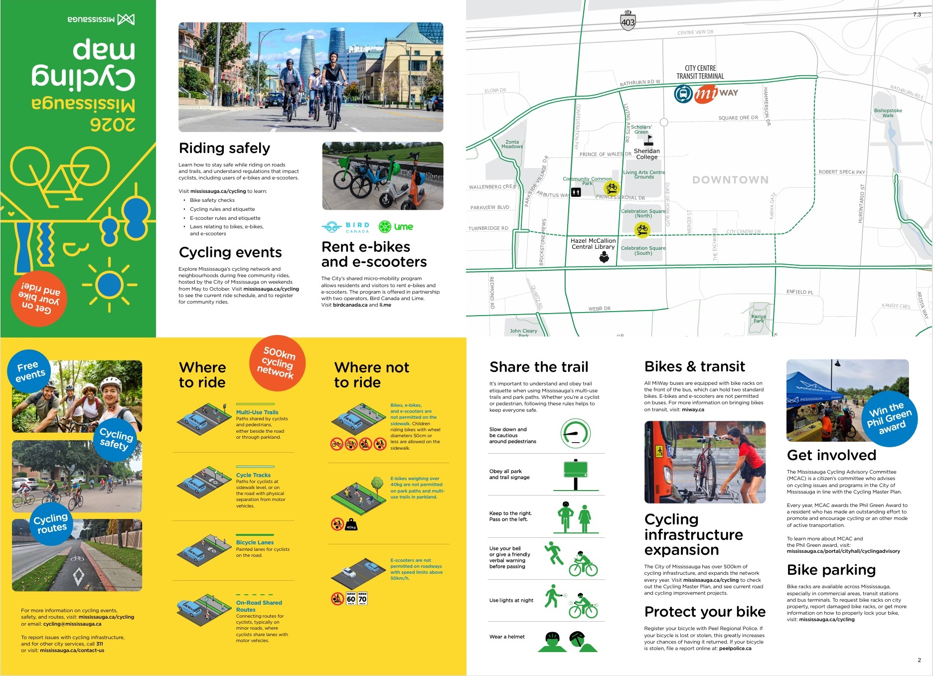 Paper copies of the 2023 Mississauga Cycling Map (latest edition) were distributed to all Mississauga Community Centres and Mississauga Bike Shops and are available FREE.